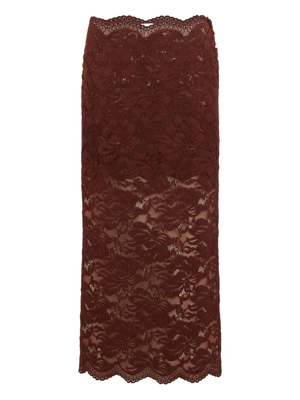 lace floral midi skirt Highlights - Brown - Scalloped hem - Floral lace - Button detailing Imported Composition Polyamide 90%, Elastane 10% Washing instructions Read Manufacturer Guidelines