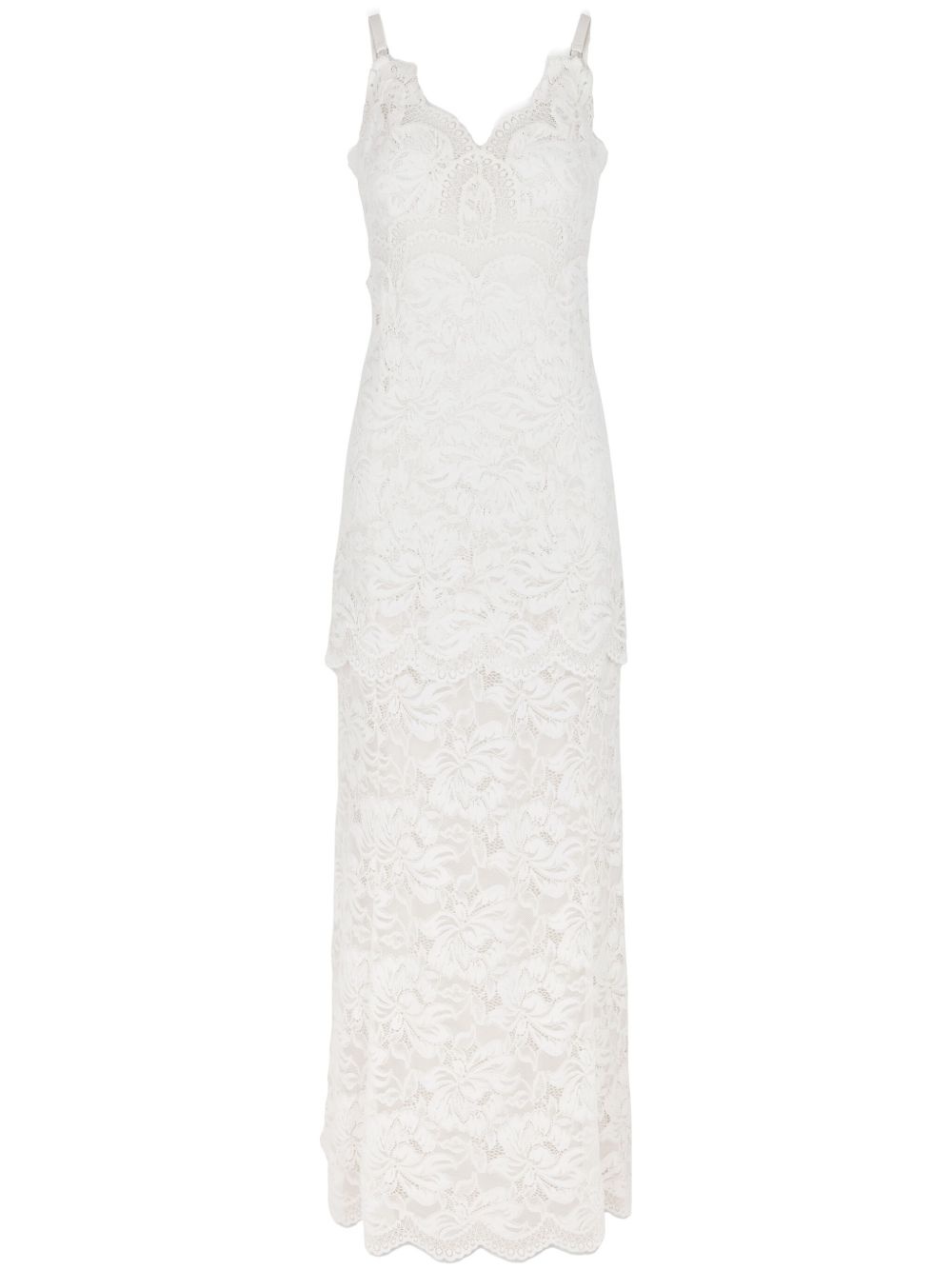 lace maxi dress Highlights - Ivory white - Concealed rear zip fastening - V-neck - Adjustable spaghetti straps - Long length Imported Composition Polyamide 90%, Elastane 10% SIZE & FIT Measurement BUST 29.13 in(74 cm) HIPS 37 in(94 cm) LENGTH 53.14 in(135 cm) WAIST 26.77 in(68 cm)