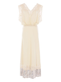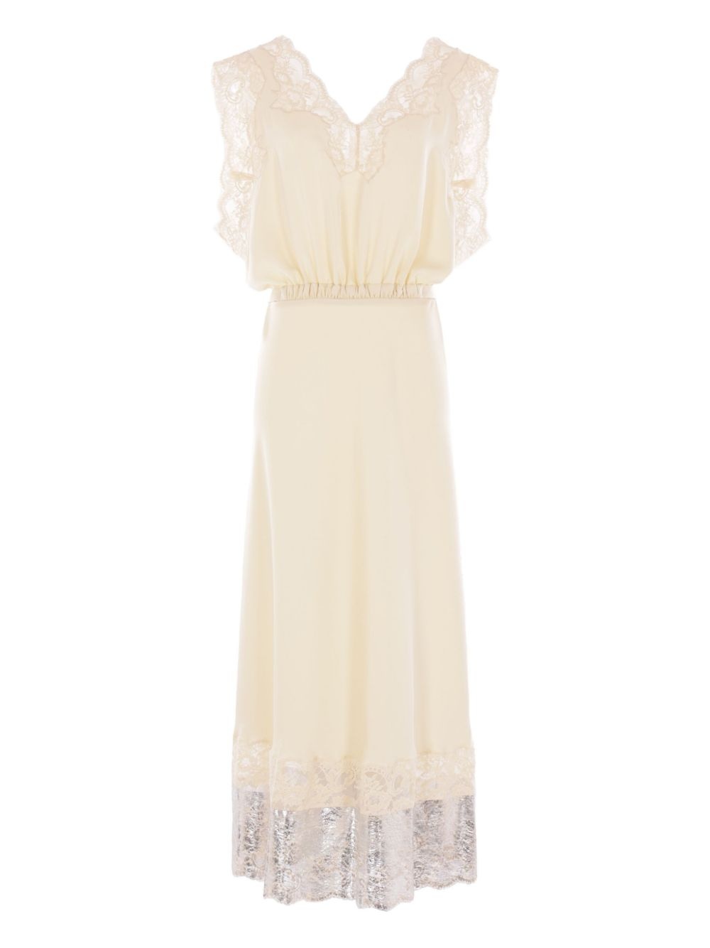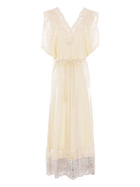 lace-trimmed midi dress Highlights - Pale yellow - V-neckline - Lace detail - Elasticated waistband - Tie waist - Flared hem - Sheer lace trim Imported Composition Polyester 100%