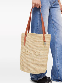 logo-embroidered raffia tote bag