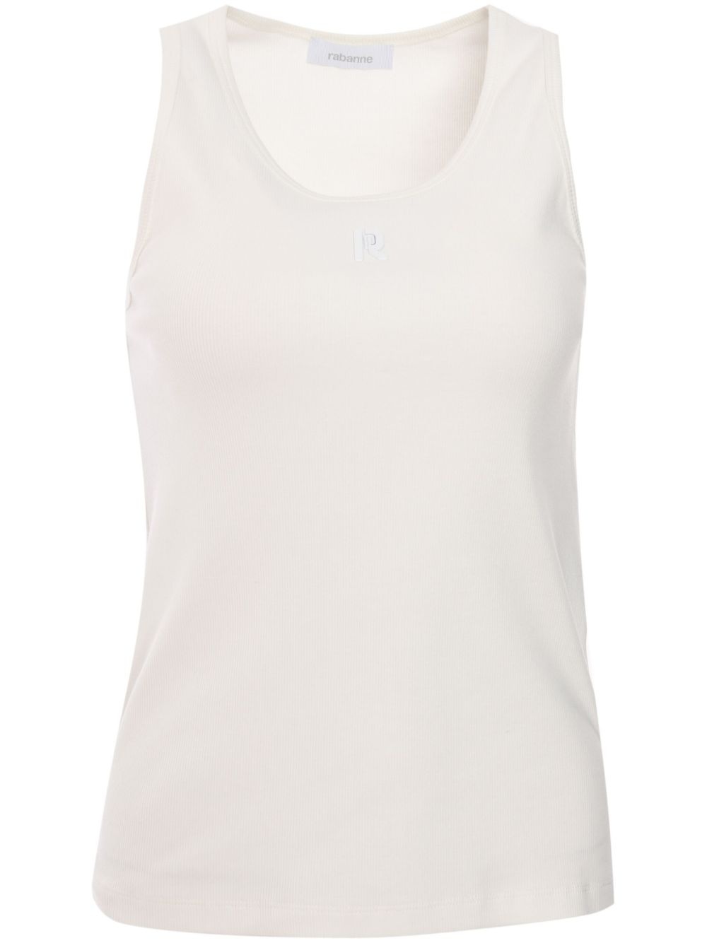 logo-embroidered tank top Highlights - Milk white - Stretch-cotton - Fine knit - Embroidered logo to the front - Scoop neck - Sleeveless - Straight hem Made in Italy Composition Cotton 97%, Elastane 3% Washing instructions Read Manufacturer Guidelines