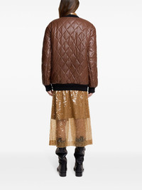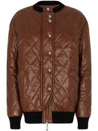 long quilted blouson Highlights - Chocolate brown - High-shine finish - Diamond quilting - Front press-stud and zip fastening - Band collar - Long sleeves - Two side welt pockets - Ribbed trim - Oversize frame Imported Composition Outer: Polyamide 65%, Polyurethane 35% Lining: Cotton 100%