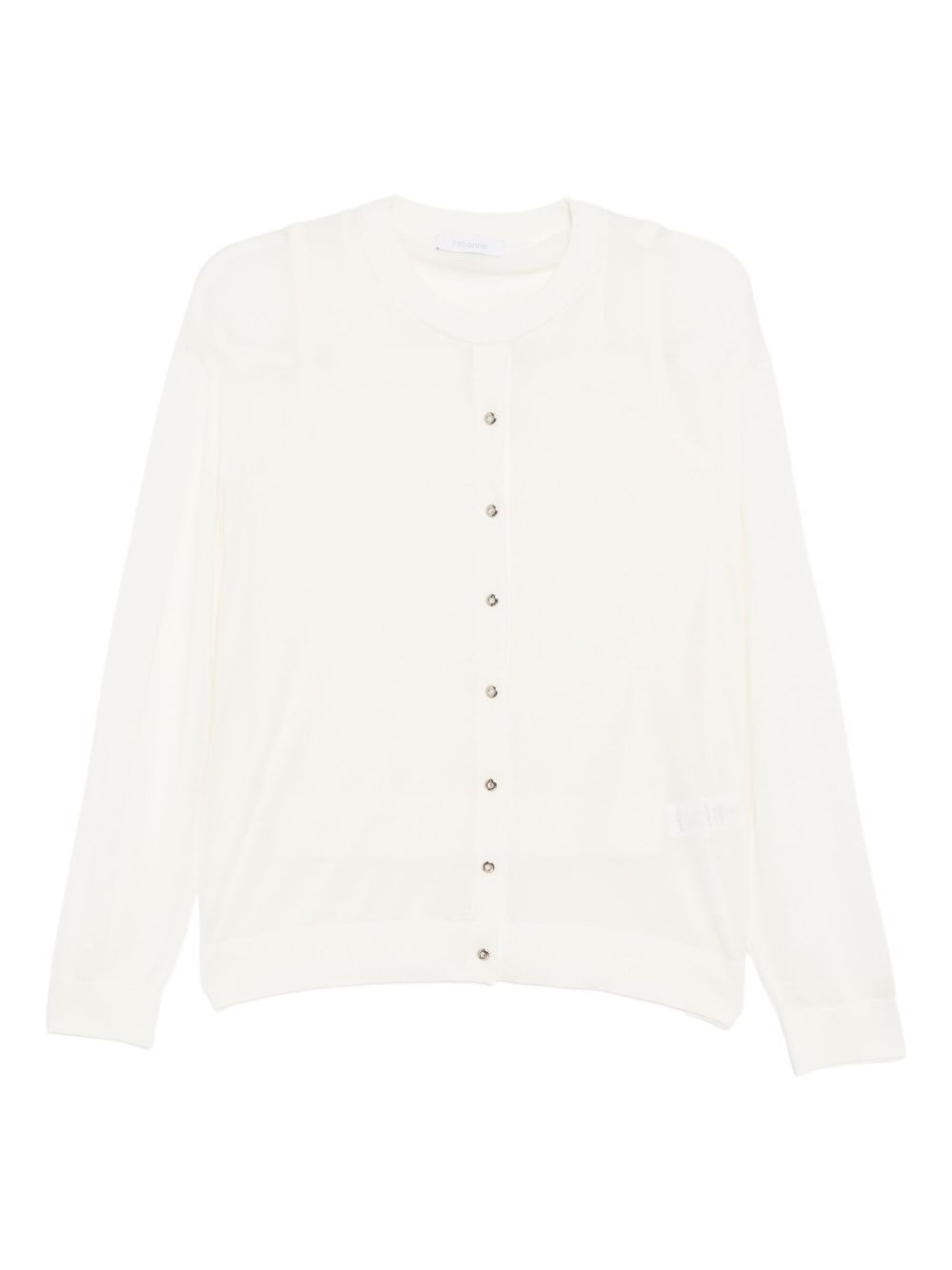 merino cardigan Highlights - Ivory - Front button fastening - Long sleeves - Ribbed cuffs and hem Imported Composition Merino 100% SIZE & FIT Model measurements Height 5 ft 10 in(1.78 m) Bust/Chest 31.88 in(81 cm) Hips 37 in(94 cm) Waist 25.19 in(64 cm) FittingInformation Designed for a relaxed fit, this piece allows for comfort and movement when worn Made with a fine knit, this piece offers some stretch Washing instructions Hand Wash