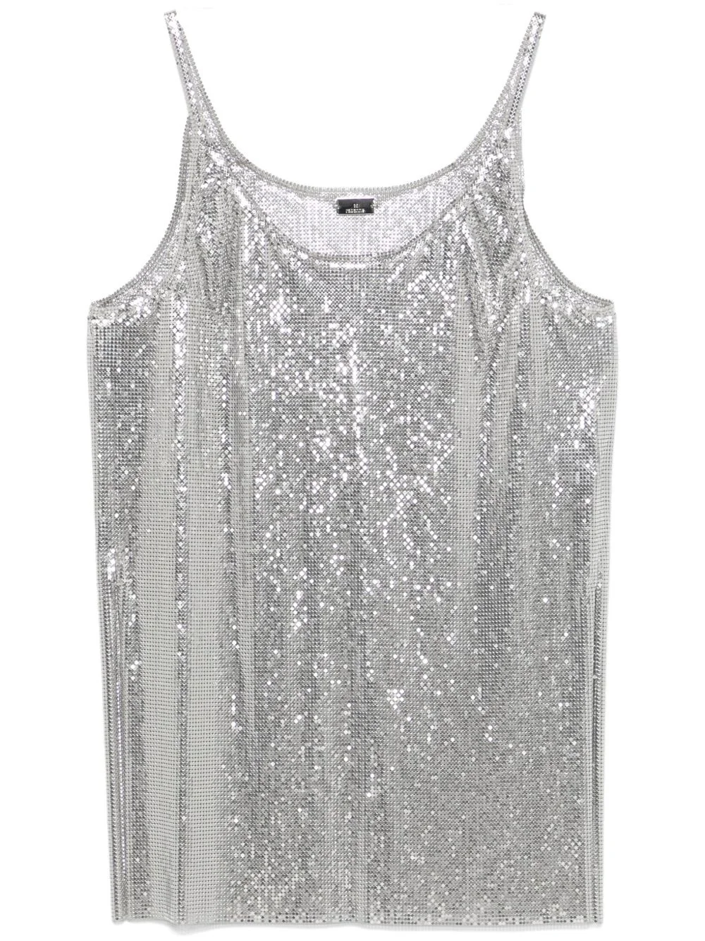 mesh tank top Highlights - This iconic silver chainmail tank top from rabanne is crafted from lightweight, fluid aluminum mesh, showcasing the brand's signature material. with thin straps and a fitted silhouette, this top adds an edgy yet sophisticated shine to any outfit. perfect for layering or as a statement piece for evening wear. color: silvercomposition: 100% aluminiumcare instructions: hand wash only Imported Composition Aluminium 100% SIZE & FIT Model measurements Height 5 ft 10 in(1.78 m) Bust/Chest 33.85 in(86 cm) Hips 36.61 in(93 cm) Waist 26.77 in(68 cm) Measurement BUST 37.79 in(96 cm) LENGTH 29.13 in(74 cm) WAIST 39.37 in(100 cm) FittingInformation Designed for a slim fit that sits just away from the body offering a close yet comfortable fit Made from a midweight non-stretch fabric