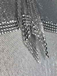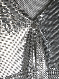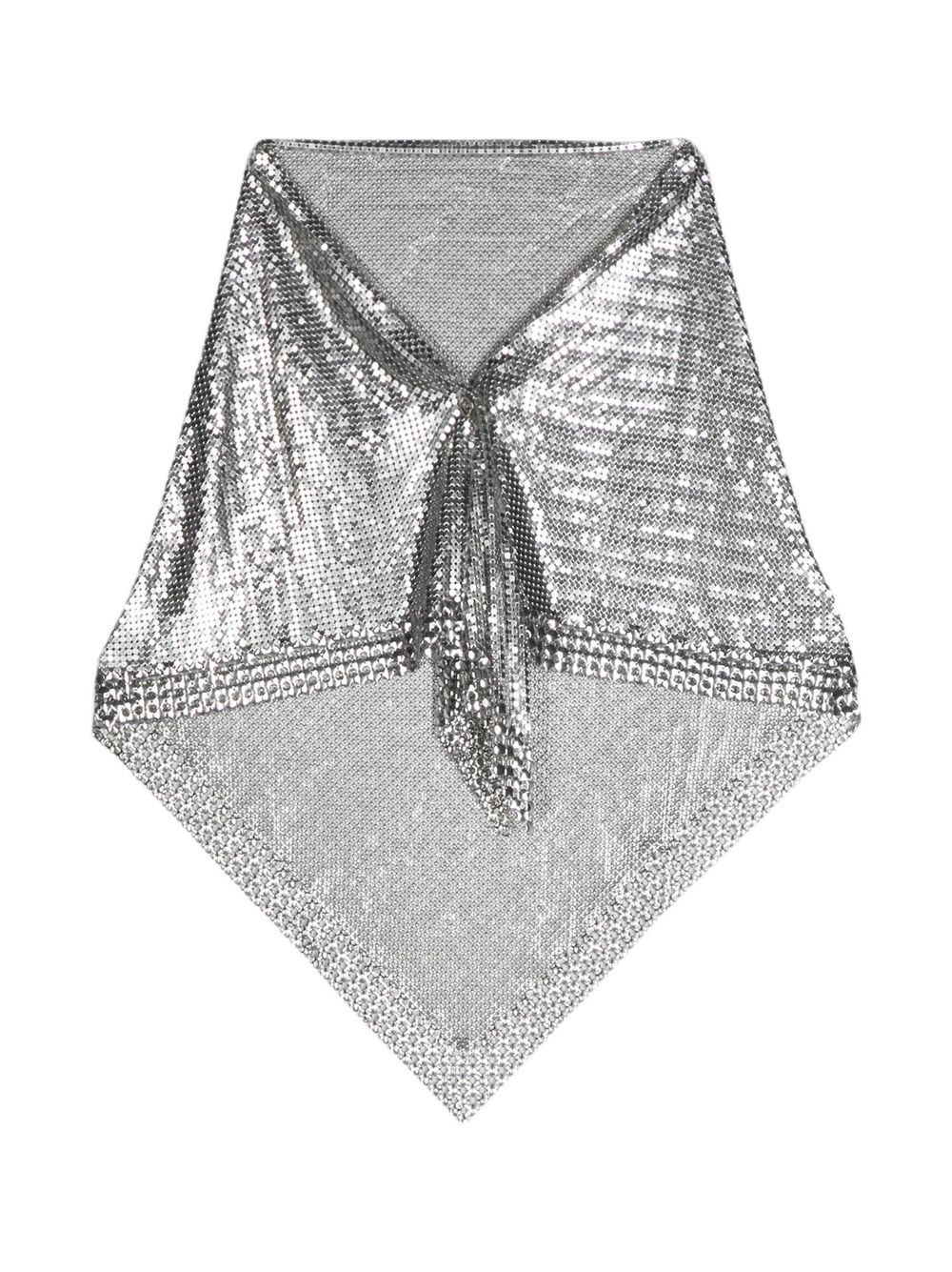 metallic chain-mail scarf Paco Rabanne's scarf is made from the brand's signature chain-mail fabric. The metallic silver paillettes glitter from all angles. Imported Composition Metal 100% SIZE & FIT Measurement LENGTH 37.4 in(95 cm) WIDTH 18.89 in(48 cm)