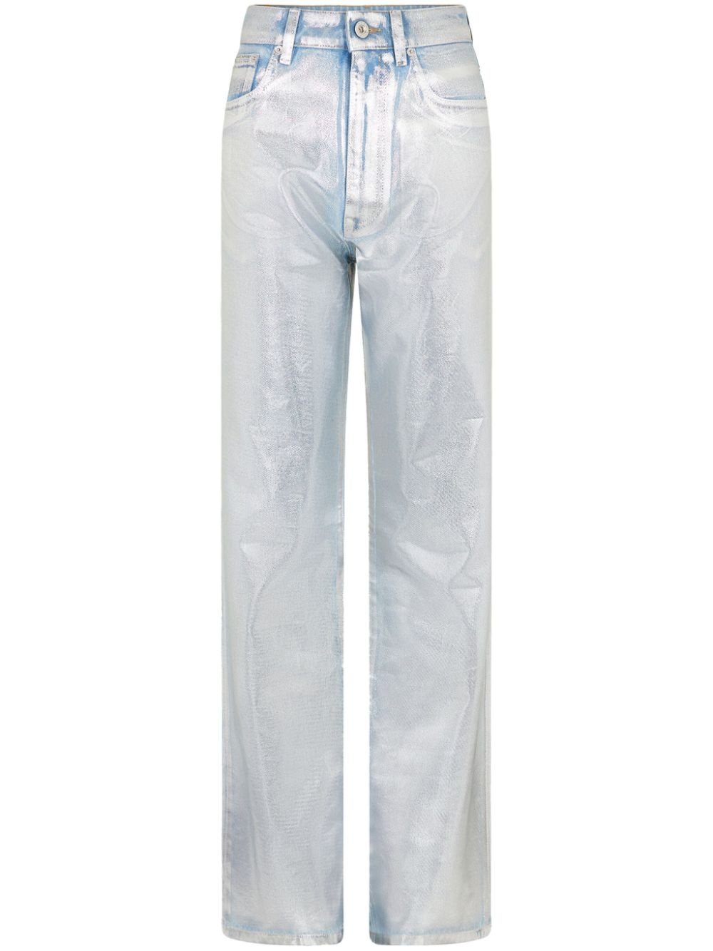metallic-finish straight-leg jeans Highlights - Silver-tone/light blue - Cotton - Metallic finish - Straight leg - Mid-rise - Belt loops - Front button and zip fastening - Classic five pockets Made in Italy Composition Cotton 100% Washing instructions Machine Wash