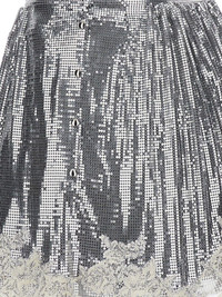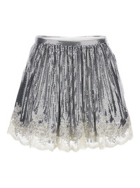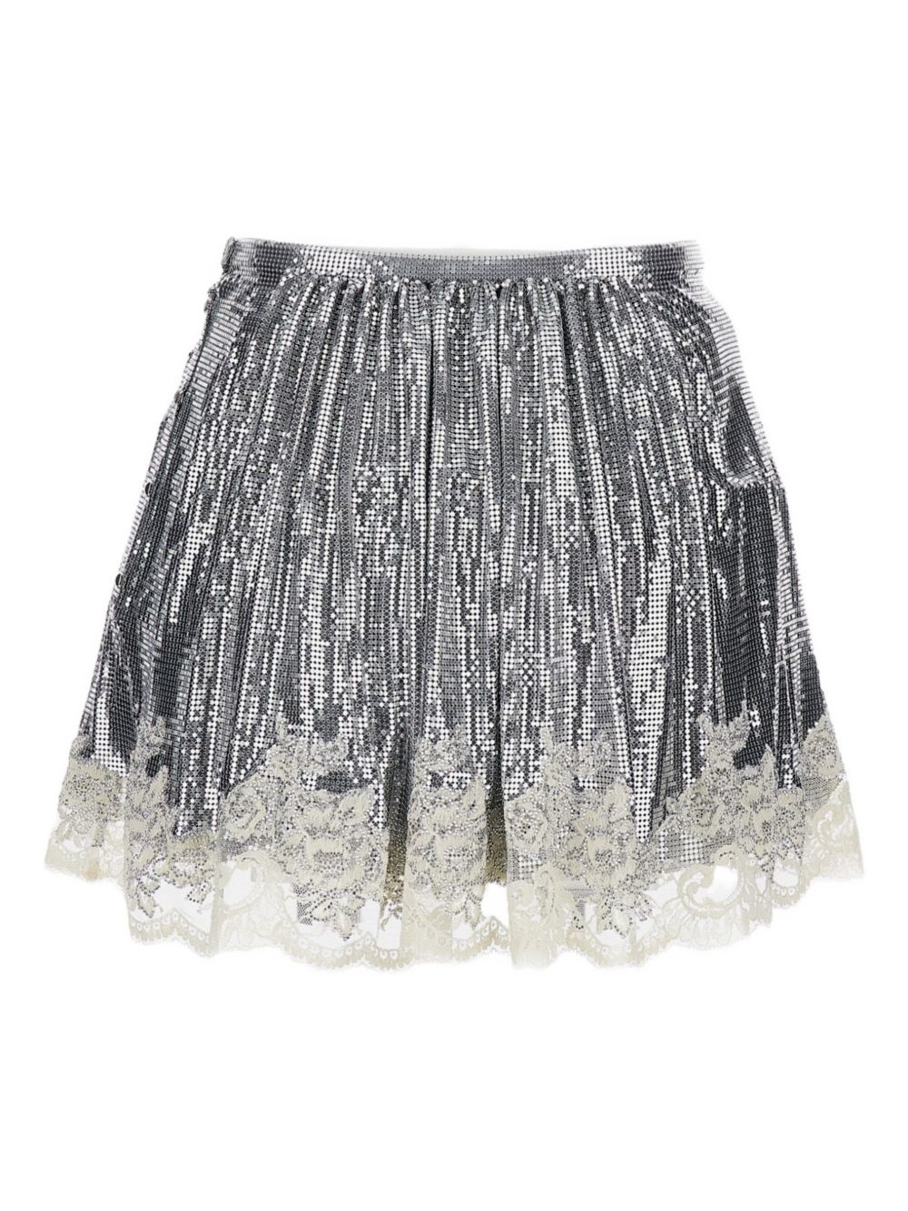 metallic lace-trimmed skirt Highlights - Silver-tone - Aluminium - Pleated - Lace trim - Button fastening - Chainmail effect Imported Composition Aluminium 100% Washing instructions Read Manufacturer Guidelines