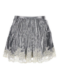 Crystal-embellished lace-trimmed chainmail mini skirt Silver