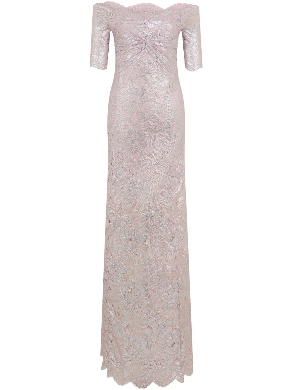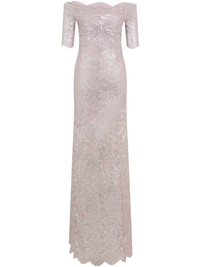 PINK LONG DRESS IN LACE WITH SILVER INDUCTION