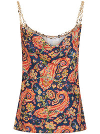 paisley-print chain-detail tank top Highlights - Navy blue/poppy red/multicolour - Paisley print - Chain-link detailing - Draped detailing - Round neck - Two chain-link shoulder straps - Sleeveless - Curved hem Imported Composition Polyester 100% Washing instructions Read Manufacturer Guidelines