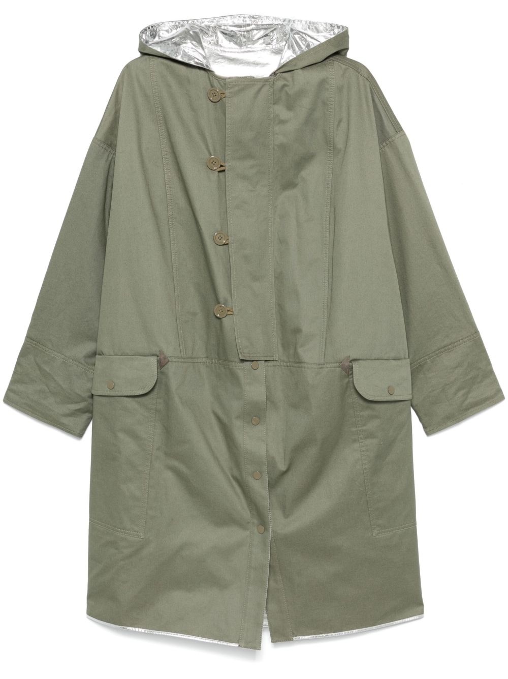 reversible parka Highlights - Ivy green/silver-tone - Cotton - Gabardine weave - Reversible - Side a - Classic hood - Front press-stud fastening - Two front flap pockets - Long sleeves - Contrasting cuffs - Side slits - Straight hem - Long length - Side b - Coated finish - Classic hood - Front press-stud fastening - Two front patch pockets - Long sleeves - Contrasting cuffs - Side slits - Straight hem - Long length Imported Composition Cotton 100% Lining: Cotton 76%, Polyurethane 24% SIZE & FIT Model measurements Height 5 ft 9 in(1.75 m) Bust/Chest 31.88 in(81 cm) Hips 34.64 in(88 cm) Waist 24.01 in(61 cm) FittingInformation Designed to be unstructured, offering a loose fit throughout Made from a midweight non-stretch fabric