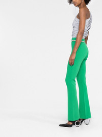rhinestone-embellished ribbed-knit flared trousers A bold green hue defines these Paco Rabanne trousers, which are crafted with a ribbed knit to accentuate their fit and flare cut. Glimmering rhinestones trim the waistline, lending the pair a subtle touch of the glamour that defines the brand's aesthetic. Imported Composition Viscose 66%, Spandex/Elastane 20%, Polyester 14% SIZE & FIT Model measurements Height 5 ft 11 in(1.8 m) Bust/Chest 31.49 in(80 cm) Hips 35.82 in(91 cm) Waist 24.8 in(63 cm) FittingInformation This piece fits true to size. We recommend you get your regular size Designed to be fitted at the waist and through the thigh, loose from the knee Made with a mid-weight stretch fabric Measurement INSIDE LEG 31.88 in(81 cm) HIPS 31.49 in(80 cm) WAIST 24.4 in(62 cm) Washing instructions Dry Clean Only