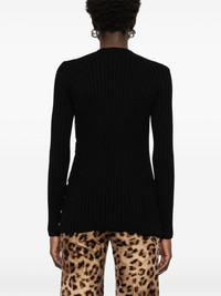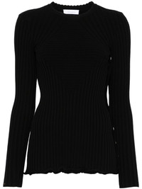 ribbed sweater Highlights - Black - Side button fastening - Scallop collar - Long sleeves - Lettuce hem Imported Composition Viscose 70%, Polyester 30% SIZE & FIT Model measurements Height 5 ft 11 in(1.8 m) Bust/Chest 32.67 in(83 cm) Hips 36.22 in(92 cm) Waist 24.4 in(62 cm) FittingInformation Designed for a close fit throughout Made with a midweight knit, this piece offers some stretch