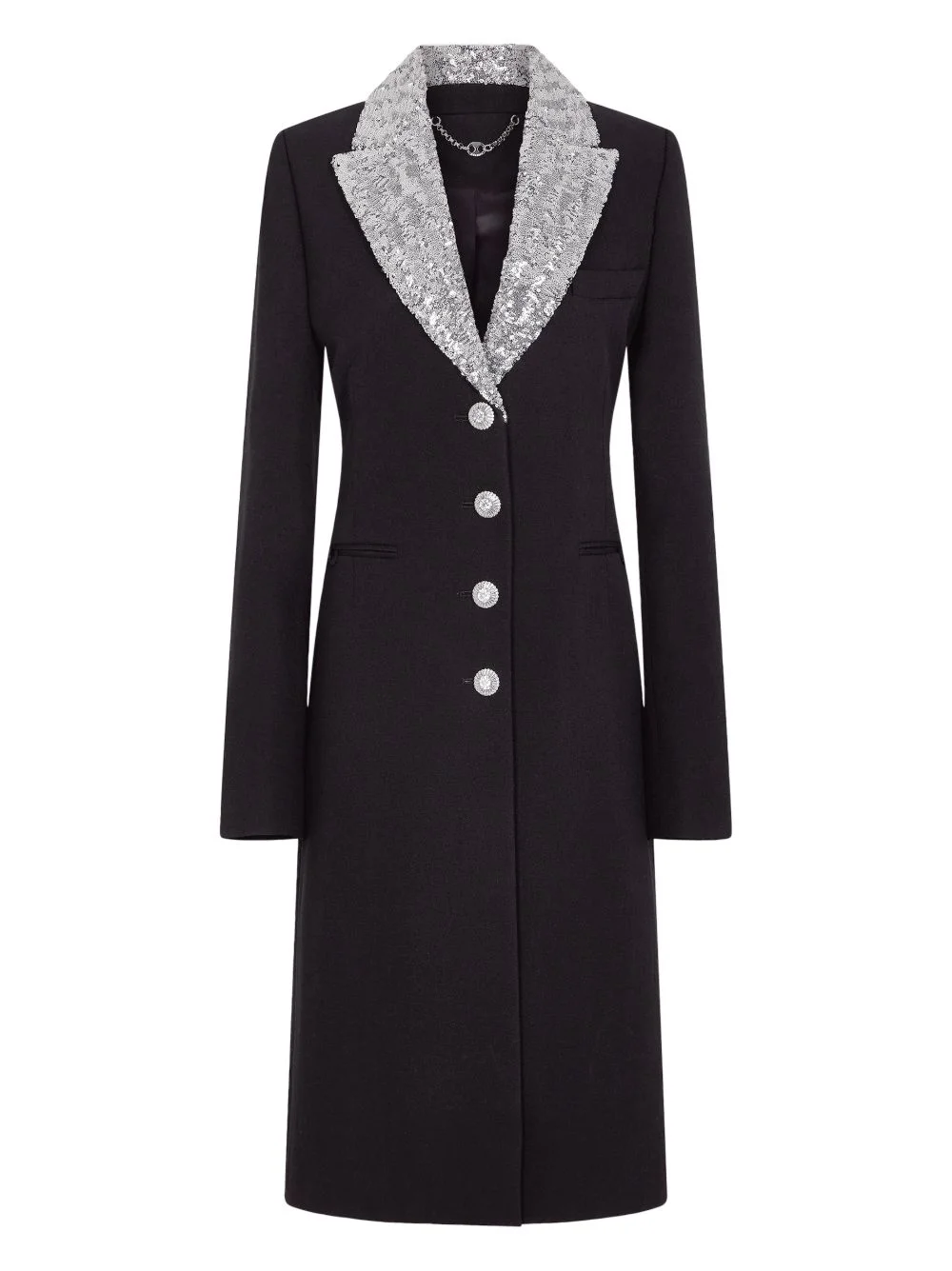 LONG WOOL COAT WITH SEQUIN COLLAR
