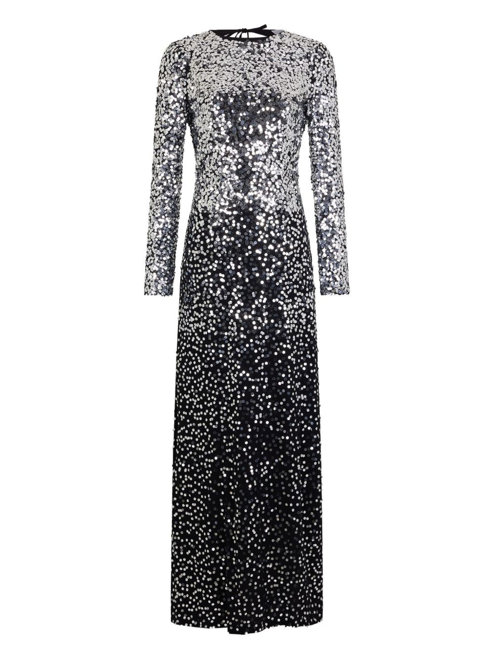 sequin ombre-effect long dress Highlights - Black and silver - Sequin embellishment - Ombre effect - Long sleeves - Round neck - Open back Imported Composition Cupro 90%, Elastane 10% Washing instructions Read Manufacturer Guidelines