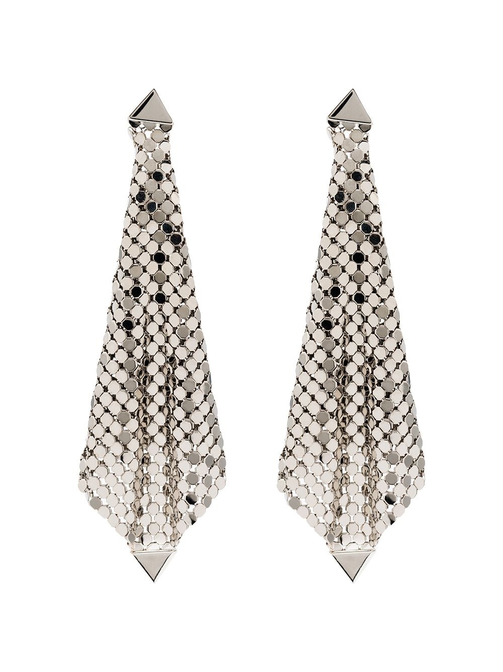 silver-tone earrings Paco Rabanne's earrings riff on the brand's iconic chanmail dresses. Perfect for parties, they shimmer from all angles. Get on that dance floor. Featuring a butterfly fastening. Made in Italy SIZE & FIT Model measurements Height 5 ft 11 in(1.8 m) Bust/Chest 32.67 in(83 cm) Hips 35.82 in(91 cm) Waist 25.98 in(66 cm)