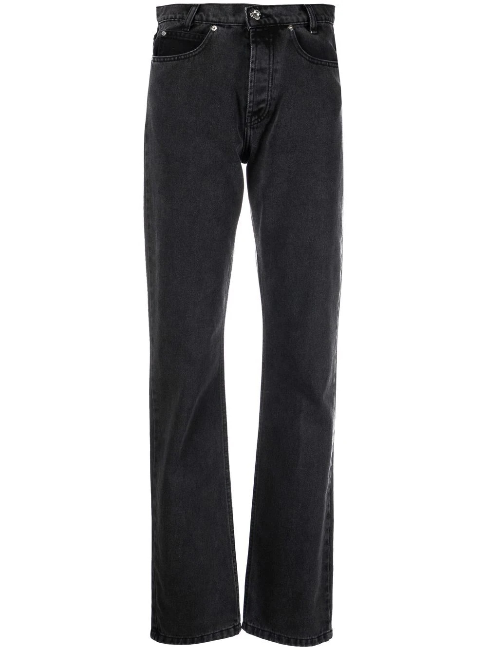 straight-leg trousers stone-grey cotton stonewashed high waist straight leg button fly fastening belt loops classic five pockets Imported Composition Cotton 100% SIZE & FIT Model measurements Height 5 ft 10 in(1.79 m) Bust/Chest 33.07 in(84 cm) Hips 35.82 in(91 cm) Waist 24.01 in(61 cm) FittingInformation This piece fits true to size. We recommend you get your regular size Designed to be fitted at the waist and hips, loose over the leg Made with a mid-weight non-stretch fabric Washing instructions Machine Wash