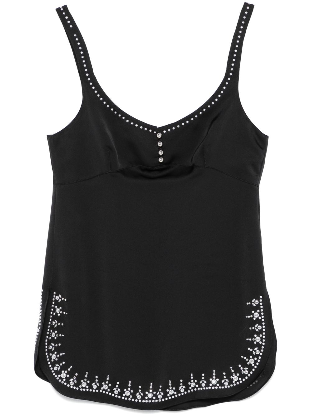 stud-detail top Highlights - Black - Satin weave - Stud detailing - Concealed rear hook and zip fastening - Scoop neck - Sleeveless - Side slits - Scoop back - Curved hem Made in Italy Composition Polyester 100% SIZE & FIT Model measurements Height 5 ft 11 in(1.8 m) Bust/Chest 33.07 in(84 cm) Hips 37.4 in(95 cm) Waist 25.19 in(64 cm) FittingInformation Designed for a close fit throughout Made from a lightweight non-stretch fabric