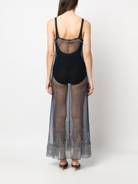 stud-detailed sheer long dress