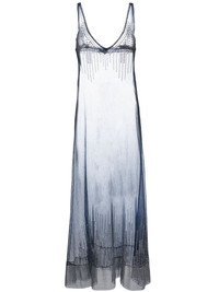 stud-detailed sheer long dress Highlights - Navy blue - Sheer finish - Silver-tone stud detailing - V-neck - Sleeveless - Thin shoulder straps - Long length Imported Composition Nylon 100% SIZE & FIT Model measurements Height 5 ft 11 in(1.8 m) Bust/Chest 31.49 in(80 cm) Hips 36.22 in(92 cm) Waist 25.59 in(65 cm) FittingInformation Designed for a close fit at the chest and waist with a loose fit at the hip Made from a midweight non-stretch fabric This piece fits true to size – take your usual size
