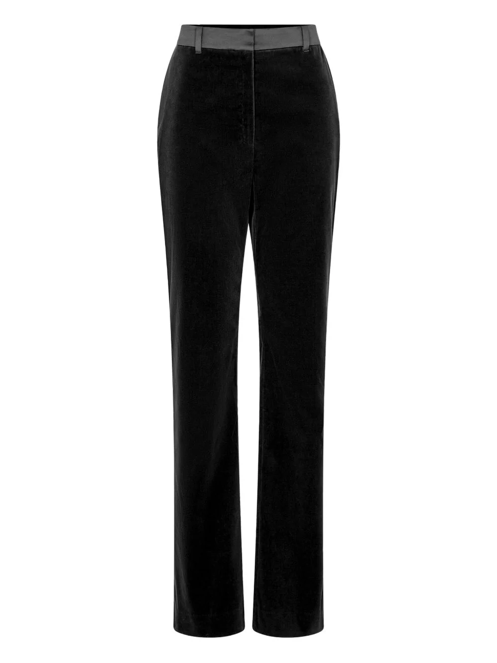 tailored trousers Highlights - Black - Velvet texture - Satin panel on the waistband - Tailored design Imported Composition Cotton 98%, Elastane 2% Washing instructions Read Manufacturer Guidelines