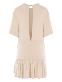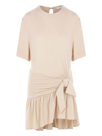 tie-detail ruffle dress Highlights - Beige - Round neck - Short sleeves - Asymmetric ruffle hem - Tie detail at waist - Back keyhole fastening Imported Composition Viscose 90%, Spandex/Elastane 10%