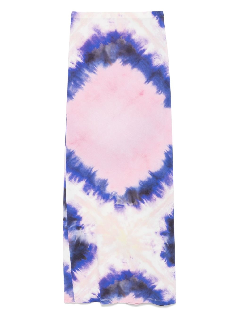 tie-dye maxi skirt Highlights - Ocean blue - Elasticated waistband - Straight hem Imported Composition Viscose 78%, Polyamide 17%, Elastane 5% SIZE & FIT Model measurements Height 5 ft 11 in(1.8 m) Bust/Chest 32.67 in(83 cm) Hips 35.82 in(91 cm) Waist 25.98 in(66 cm) FittingInformation This maxi-length skirt is intended to be worn high on the waist The elasticated waist allows for a comfortable fit Made from a lightweight stretch fabric, this piece offers elasticity and flexibility when worn