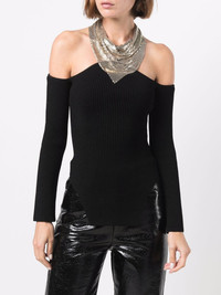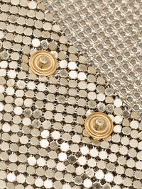 triangle scarf Trying to add a little shimmer to your look before heading out for the night with your friends? Glisten and shine with this gold aluminum triangle scarf from Paco Rabanne that will elevate your look with a metallic sheen that even catches the light as you're on the dancefloor. Shine above the rest. Featuring a snap fastening, a metallic sheen and an engraved logo. Made in France Composition Aluminium 100% SIZE & FIT Model measurements Height 5 ft 10 in(1.78 m) Bust/Chest 33.46 in(85 cm) Hips 36.22 in(92 cm) Waist 23.22 in(59 cm) Measurement LENGTH 16.14 in(41 cm) WIDTH 16.92 in(43 cm)