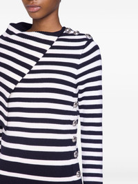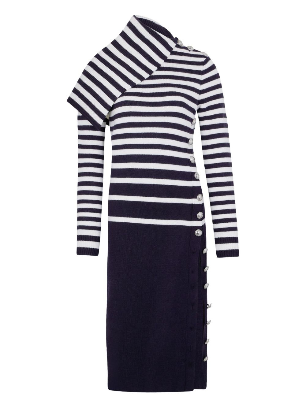 wool midi dress Highlights - Blue - Vertical stripe pattern - Long sleeves - Decorative button detailing Imported Composition Wool 100%