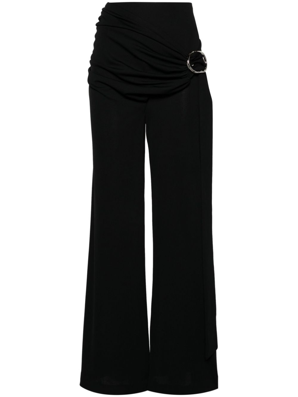 wraparound-design palazzo pants Highlights - Black - Stretch-jersey - High-rise - Belted waist - Wraparound style - Layered design - Logo-engraved buckle - Palazzo design Imported Composition Viscose 62%, Polyamide 29%, Spandex/Elastane 9% SIZE & FIT Model measurements Height 5 ft 11 in(1.8 m) Bust/Chest 32.67 in(83 cm) Hips 36.22 in(92 cm) Waist 24.4 in(62 cm) Measurement BACK RISE 15.35 in(39 cm) FRONT RISE 12.99 in(33 cm) Hem Width 14.96 in(38 cm) HIPS 36.22 in(92 cm) INSIDE LEG 32.67 in(83 cm) Outside Leg 43.7 in(111 cm) WAIST 29.13 in(74 cm) FittingInformation Designed with a wide-leg cut, these trousers allow for a close fit at the waist and offer a loose and roomy fit over the leg The belt offers adjustability for fitted preferences Made from a midweight stretch fabric, this piece offers elasticity and flexibility when worn This piece fits true to size – take your usual size Washing instructions Dry Clean Only