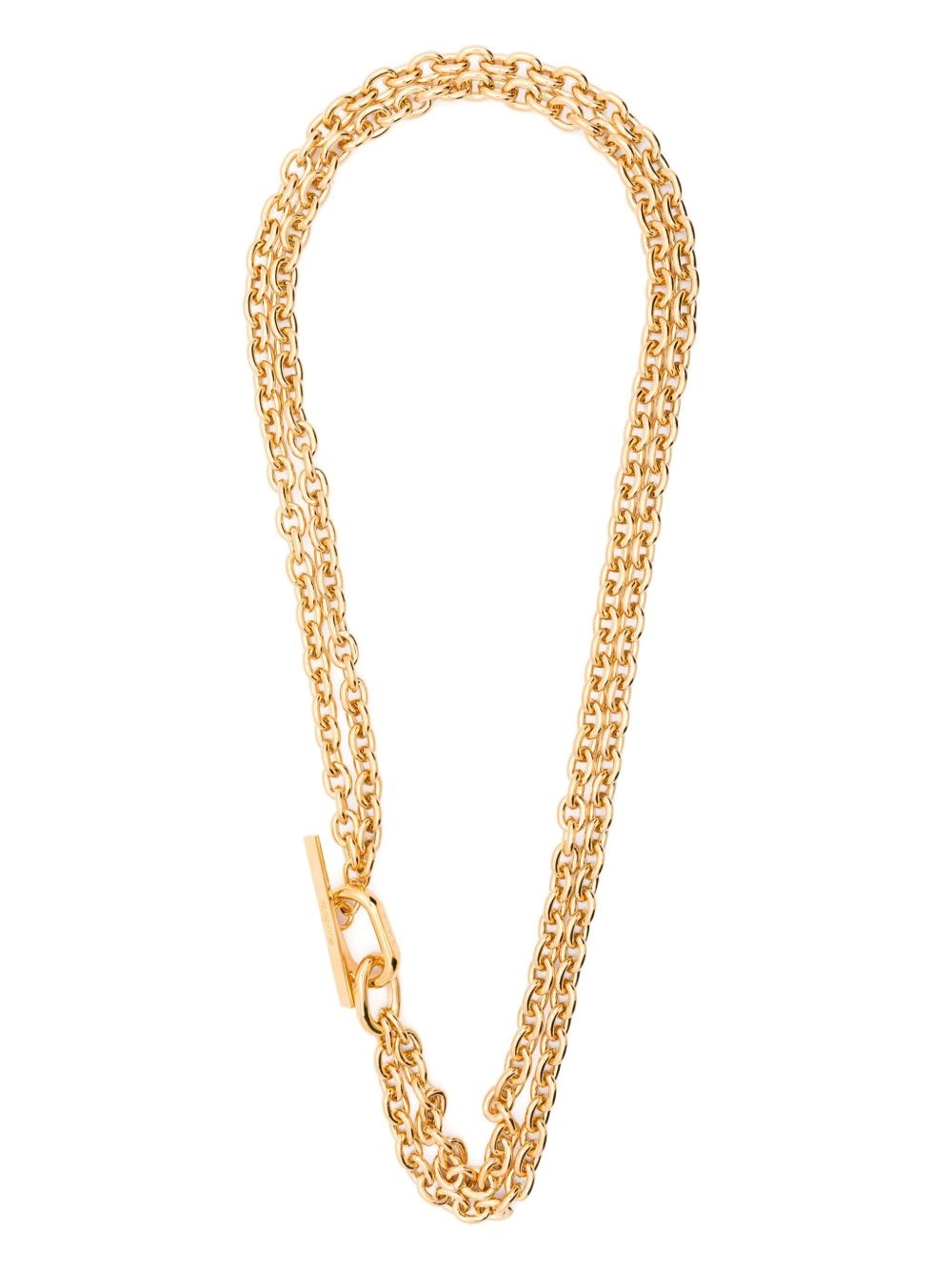 XS Link necklace Highlights - Gold-tone - T-bar fastening - Lobster claw fastening - Chain-link detailing - Your purchase will arrive with a gift box. - This piece comes complete with a protective dust bag. Made in Italy SIZE & FIT Model measurements Height 5 ft 10 in(1.77 m) Bust/Chest 34.64 in(88 cm) Hips 35.43 in(90 cm) Waist 24.8 in(63 cm) Measurement Length when open 33.46 in(85 cm) WIDTH 0.59 in(1.5 cm)