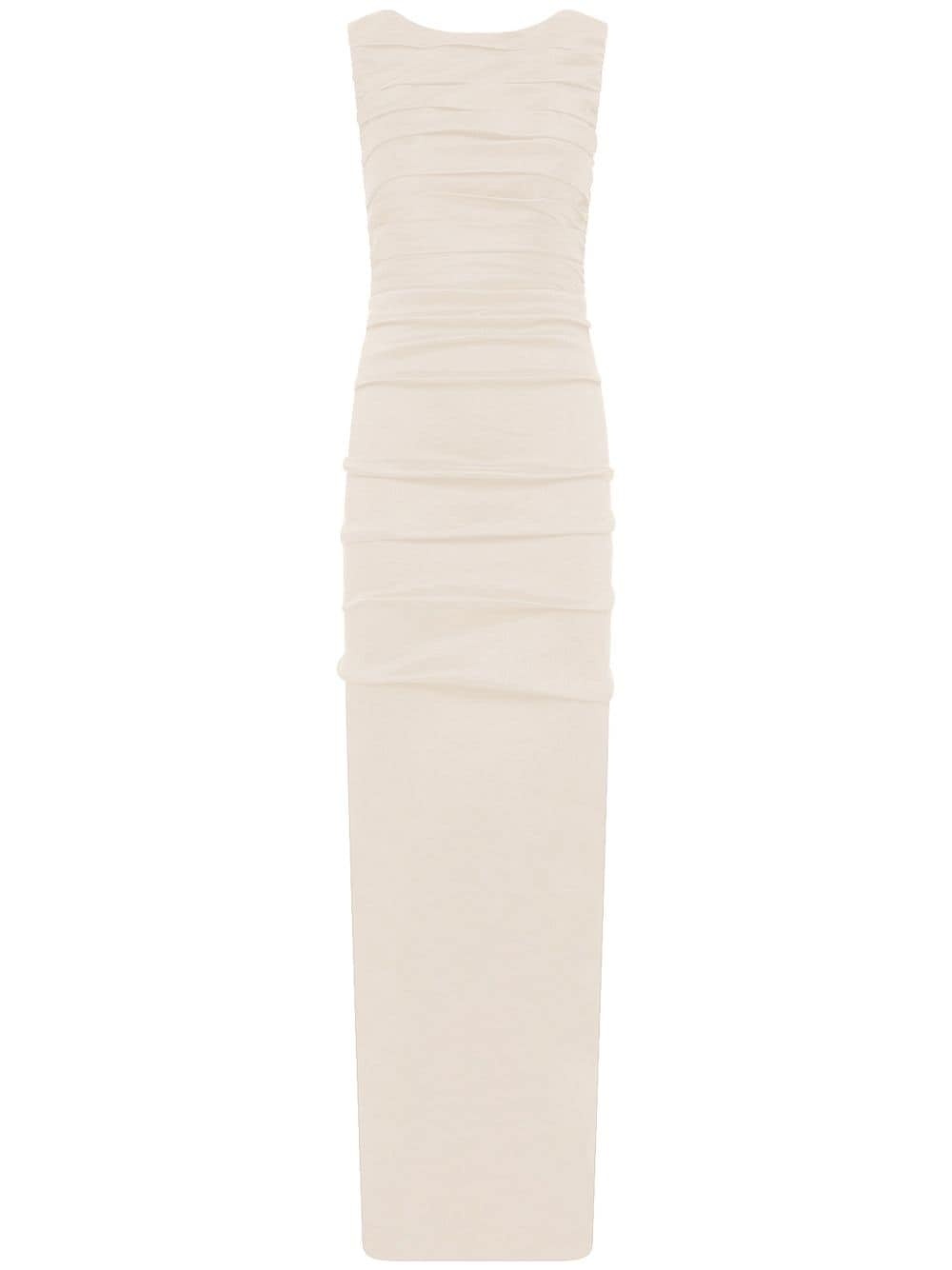 Adela maxi dress Highlights - Light beige - Stretch-design - Draped detailing - Rear slit - Round neck - V-back - Rear zip fastening - Sleeveless - Straight hem - Floor-length Imported Composition Outer: Polyester 50%, Nylon 45%, Elastane 5%