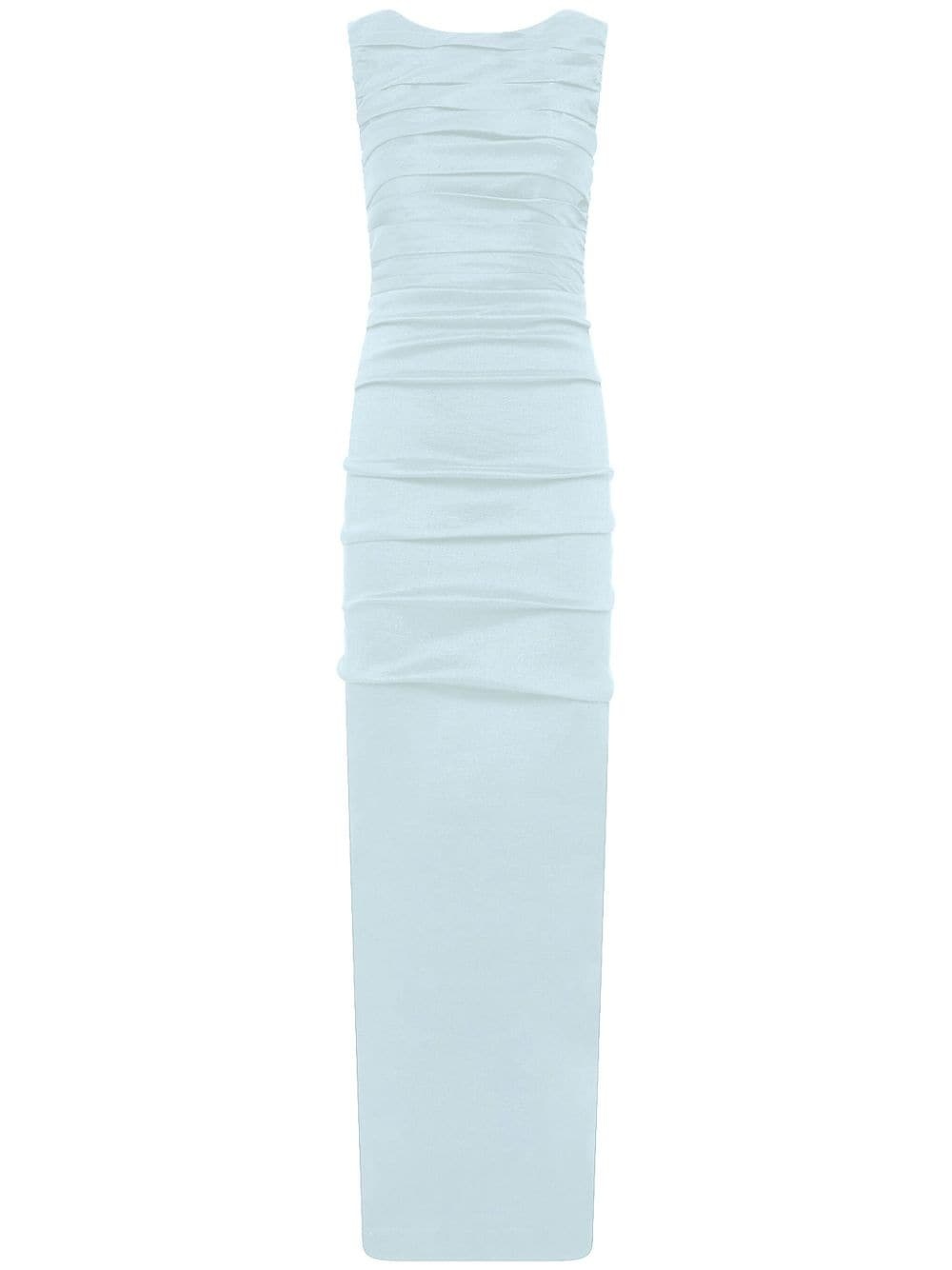 Adela maxi dress Highlights - Light blue - Stretch-design - Draped detailing - Rear slit - Round neck - V-back - Rear zip fastening - Sleeveless - Straight hem - Floor-length Imported Composition Outer: Polyester 50%, Nylon 45%, Elastane 5%