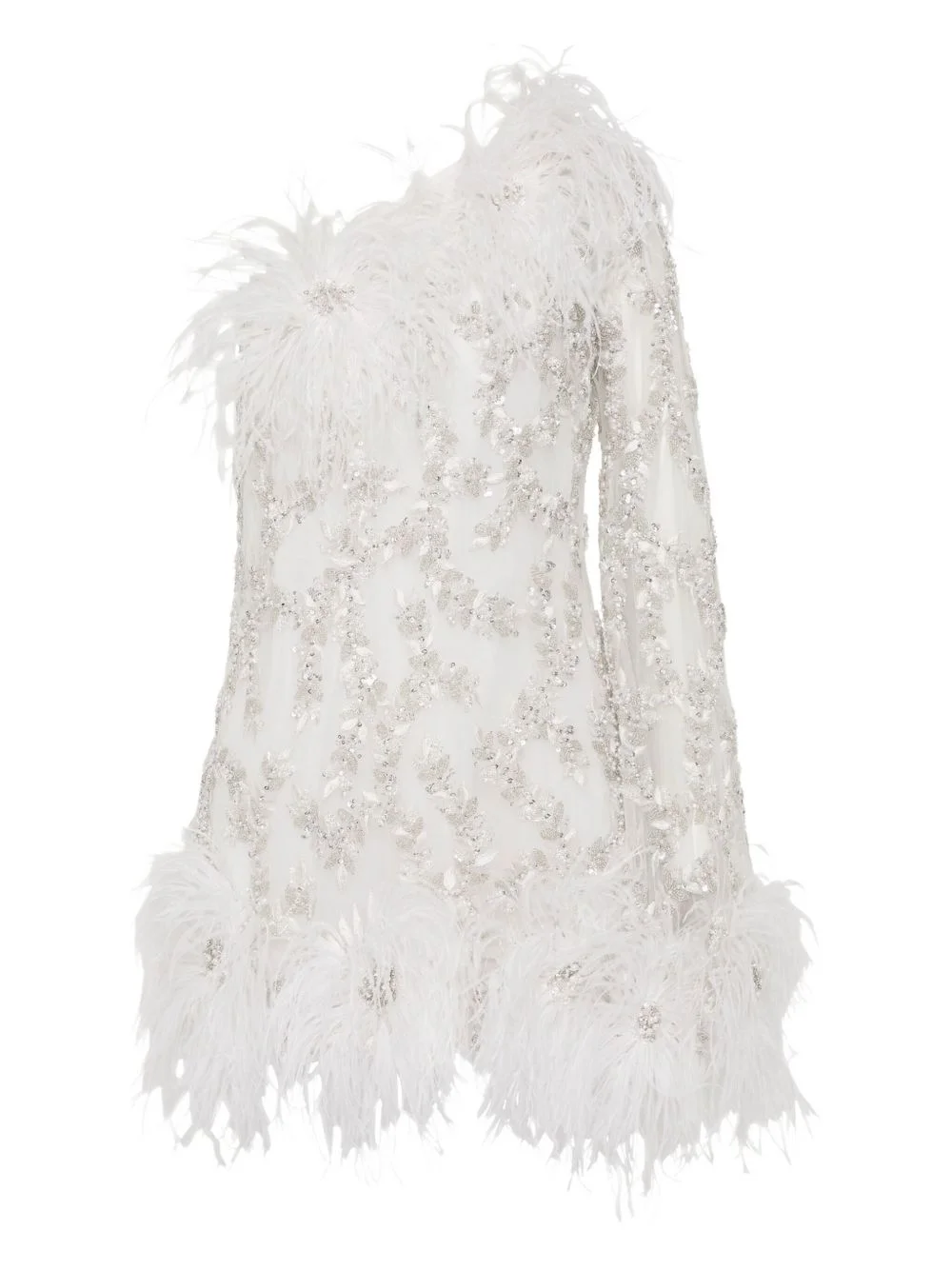 Alby mini dress Highlights - Ivory - Feather embellishment - One-shoulder neckline - Beaded floral embroidery Imported Composition Nylon 100% Washing instructions Specialist Cleaning