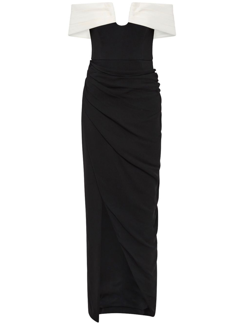 Aven gown Highlights - Black - Concealed rear zip fastening - Off-shoulder - Short sleeves - Side slit Imported Composition Viscose 100%