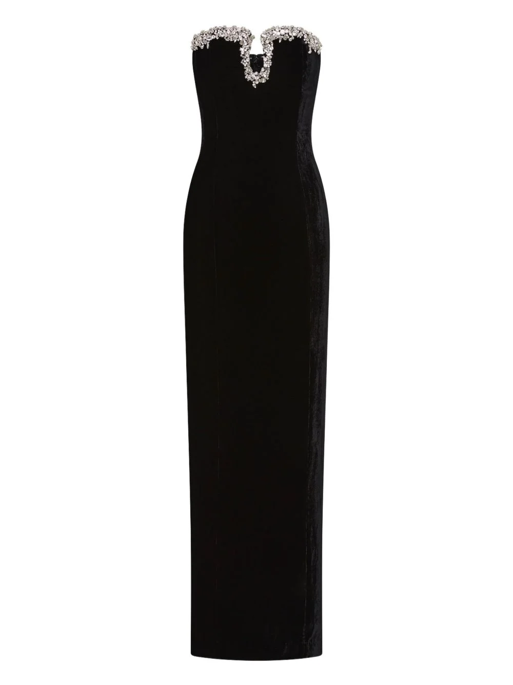 Claudine velvet gown Highlights - Black - Velvet - Crystal embellishment - Sweetheart neck - Strapless Imported Composition Viscose 80%, Silk 20% Washing instructions Dry Clean Only