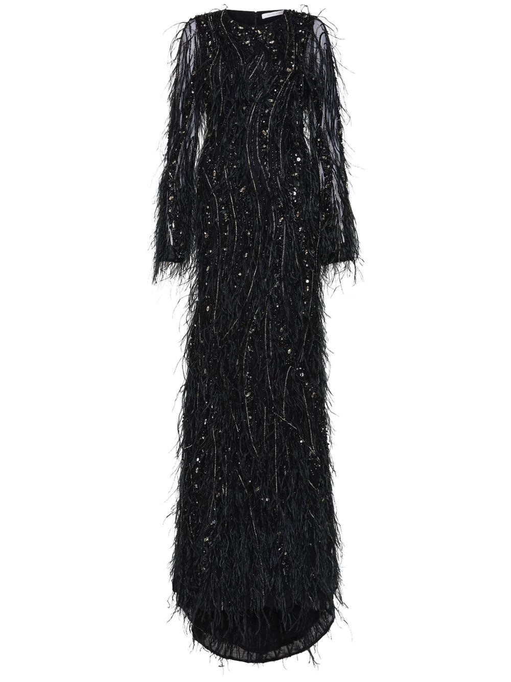 Cynthia gown Highlights - Black - Concealed rear zip fastening - Side slit - Long sleeves - Floor-length Imported Composition Nylon 100%