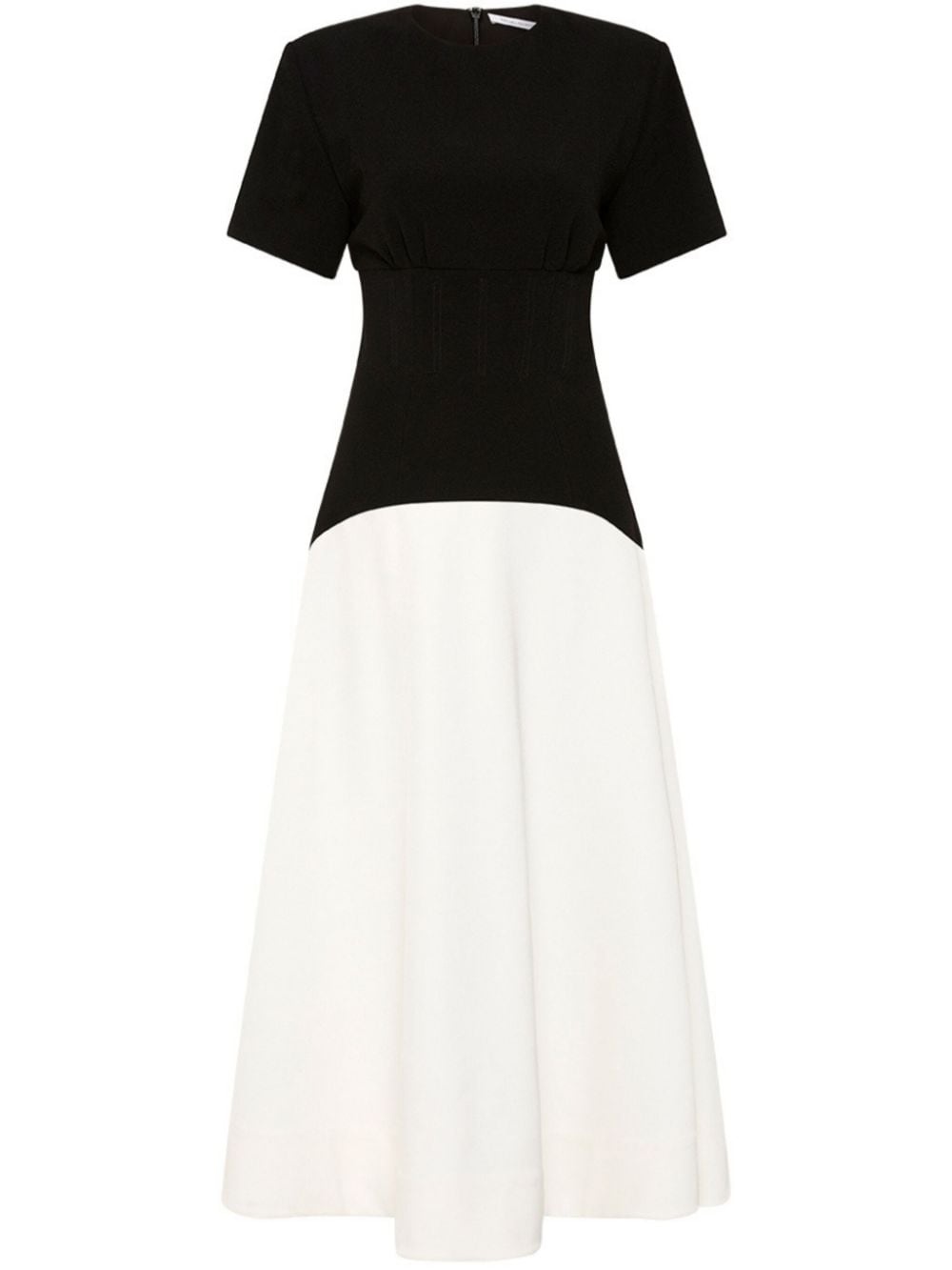 Dover midi dress Highlights - Black/white - Rear zip fastening - Round neck - Short sleeves - A-line skirt - Mid-length Imported Composition Outer: Polyester 97%, Elastane 3% Lining: Polyester 100%