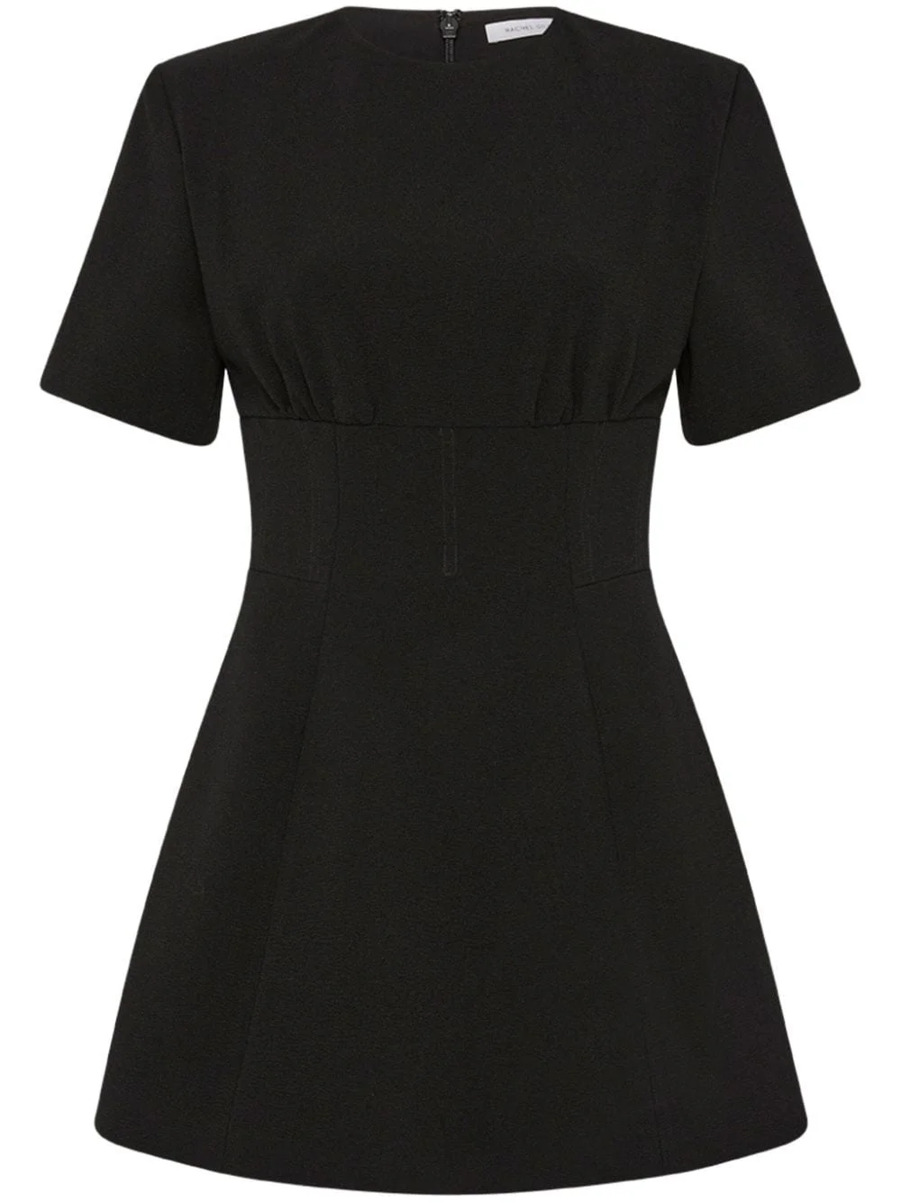 Dover mini dress Highlights - Black - Rear zip fastening - Round neck - Short sleeves - Fitted waistline - Flared skirt - Thigh-length Imported Composition Outer: Polyester 97%, Elastane 3% Lining: Polyester 100%