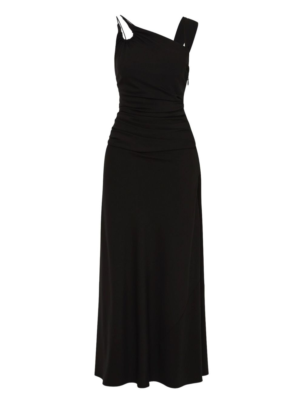Fitz cut-out gathered maxi dress Highlights - Black - Asymmetrical neckline - Gathered waist - Sleeveless - Shoulder detail Imported Composition Polyester 53%, Rayon 47% Washing instructions Read Manufacturer Guidelines