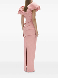 Frey gown Highlights - Light pink - Concealed rear zip fastening - Short puff sleeves - V-neck - Rear slit Imported Composition Nylon 50%, Polyester 50%