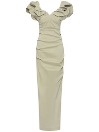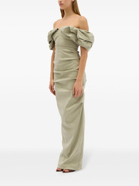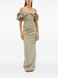 Frey maxi dress Highlights - Sage green - Stretch-design - Draped detailing - Rear slit - Off-shoulder - Rear zip fastening - Straight hem - Floor-length Imported Composition Outer: Polyester 50%, Nylon 45% Elastane 5%