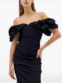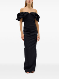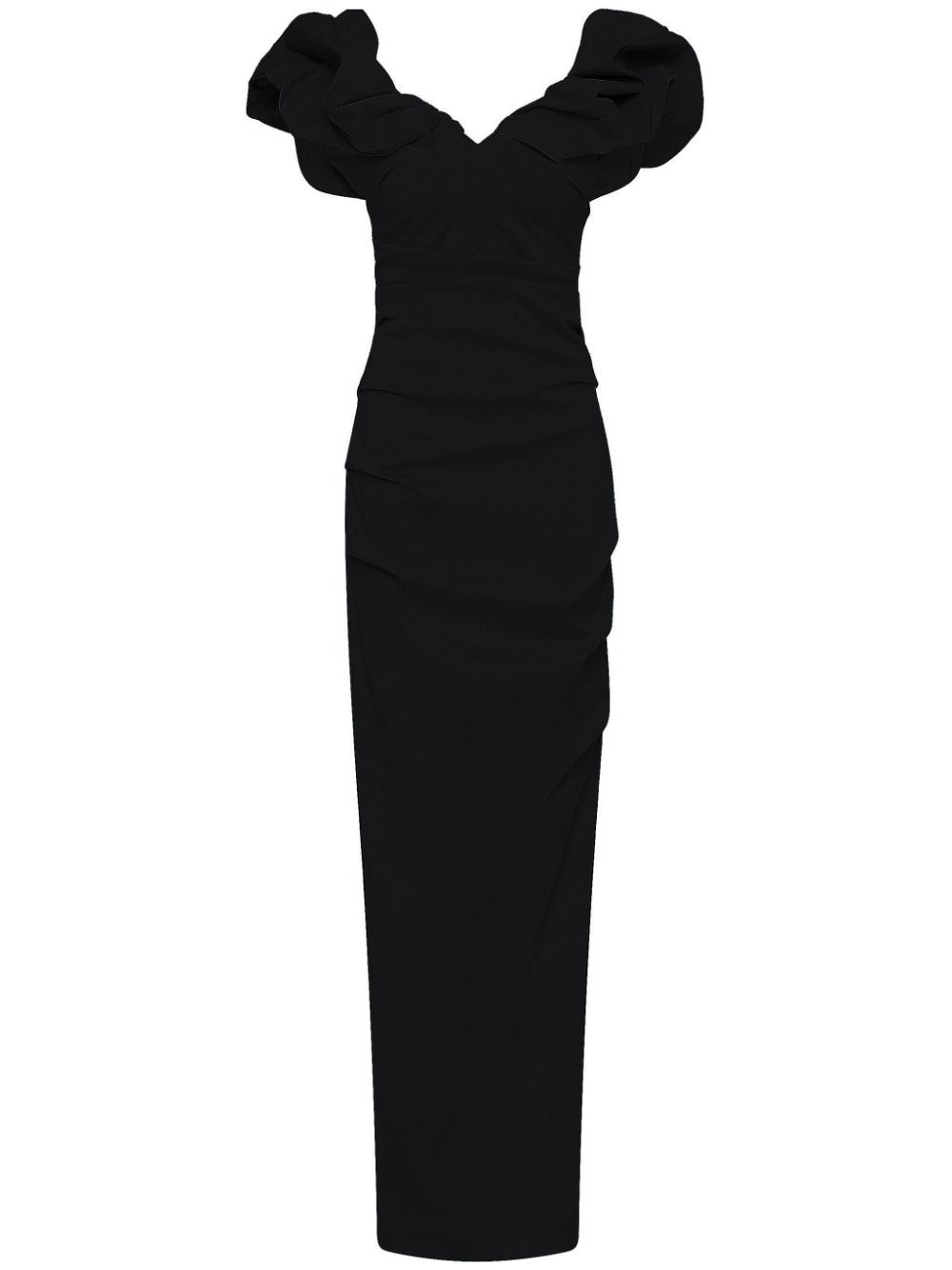 Frey maxi dress Highlights - Black - Draped detailing - Rear slit - Off-shoulder - Rear zip fastening - Straight hem - Floor-length Imported Composition Outer: Polyester 50%, Nylon 50%