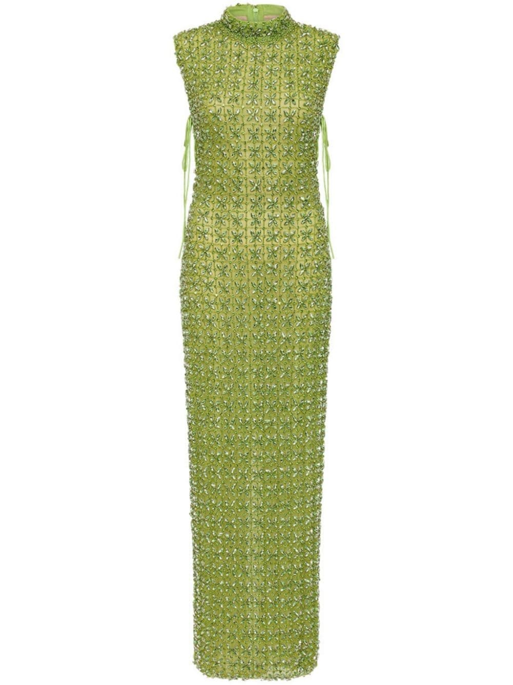 Indi gown Highlights - Lime green - Rear zip fastening - Rhinestone embellishment - Mock neck - Sleeveless - Side tie fastening - Rear slit - Straight hem - Long length Imported Composition Nylon 100%