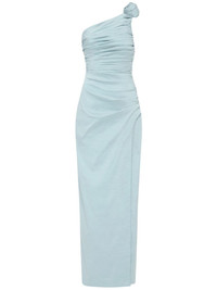 Josie maxi dress Highlights - Light blue - Stretch-design - Draped detailing - Faux-flower detailing - Front slit - One-shoulder - Rear zip fastening - Straight hem - Floor-length Imported Composition Outer: Polyester 50%, Nylon 45% Elastane 5%