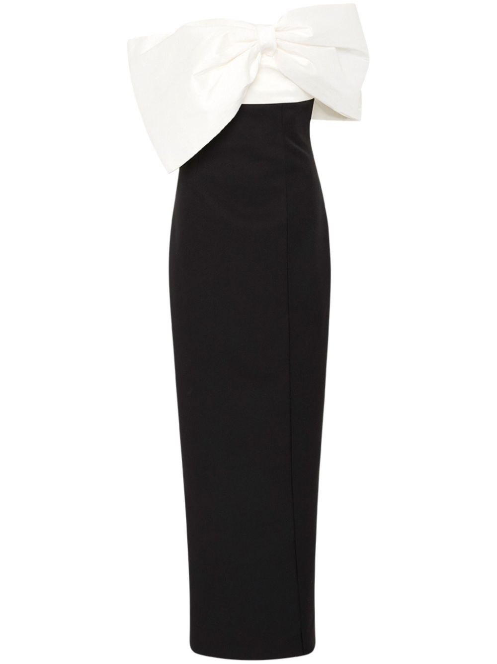 Kace gown Highlights - Black/white - Rear zip fastening - Oversize bow detail - One-shoulder - Single short sleeve - Long length - Rear slit Imported Composition Outer: Polyester 97%, Elastane 3% Lining: Polyester 100%