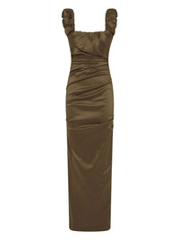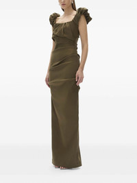 Kalina gown Highlights - Olive green - Concealed rear zip fastening - Square neck - Gathered detailing - Rear slit Imported Composition Polyester 50%, Nylon 50%