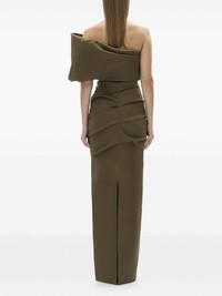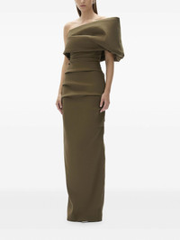 Kat gown Highlights - Olive green - Concealed rear zip fastening - One-shoulder - Gathered detailing - Rear slit Imported Composition Nylon 50%, Polyester 50%