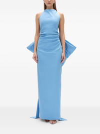 Lottie bow-detail halterneck gown Highlights - Light blue - Halterneck - Open back - Draped bow detail - Floor-length skirt Imported Composition Nylon 50%, Polyester 50% Washing instructions Dry Clean Only
