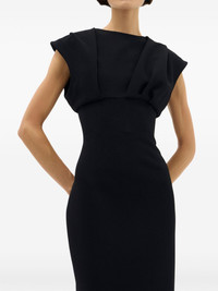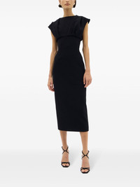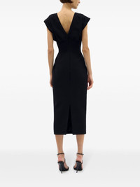 Maggie draped-detailed midi dress Highlights - Black - Fitted waistline - Draped detailing - Short sleeves - V-back - Concealed rear zip fastening - Straight hem - Mid-length Imported Composition Outer: Polyester 97%, Elastane 3%